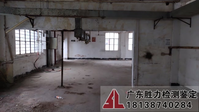 廣東省珠海市某工業廠房建筑,據悉建于上世紀九十年代,框架結構四層,總建筑面積約2000m2,作廠房用途使用。房屋主要朝向為坐南向北,主體結構以現澆鋼筋混凝土柱、梁、板等構件承重,180mm厚磚墻圍護。房屋外墻飾面為混合砂漿抹灰噴黃色涂料,內墻及天花飾面均為混合砂漿抹灰掃白,水泥地面,防火門、鋁合金窗。