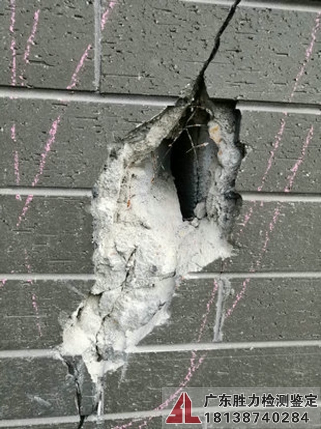 我司通過對該部分房屋的原設計圖紙資料及使用情況調查、結構構件工作狀態檢查、圍護間隔墻體及裝修設備等一系列鑒定檢測工作, 評定房屋的完損程度。分別檢查了房屋的柱子、梁、板、墻體等構件,檢查地基基礎是否有不均勻沉降,柱、梁、板及墻體的開裂變形情況等。根據現場查勘、歷史使用情況調查及現時房屋損壞出現的部位、形狀、特征等綜合分析,該部分房屋局部墻體出現開裂的主要原因是今年年中期間因四層露天花園處排水管堵塞曾短期出現積水現象,由于該區域為長度較大的懸臂結構,故積水造成該部分區域的懸臂梁撓度增大,從而導致梁上部抗拉強度較低的砌筑墻體因間接位移作用產生垂直于主拉應力方向上的裂縫。
