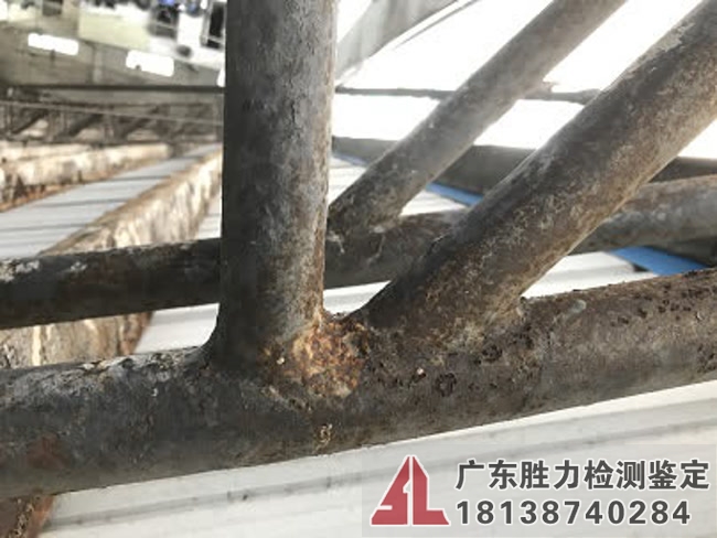 現(xiàn)時(shí)該房屋結(jié)構(gòu)整體的可靠性等級評定為Dsu級,安全性極不符合該標(biāo)準(zhǔn)對安全性Asu級的要求,嚴(yán)重影響房屋整體承載功能,對此,我司給出了相關(guān)的處理參考建議,建議對承載力不滿足要求的鋼屋架及檁條做加固或更換處理。改造后部分排架柱的承載力基本滿足使用要求、其余各排架柱及抗風(fēng)柱的承載力滿足使用要求,各現(xiàn)有鋼屋架、檁條的承載力不滿足使用要求,故不宜進(jìn)行改造,若要改造,須對承載力不滿足要求的排架柱及鋼屋架、檁條做加固或更換處理。