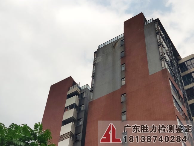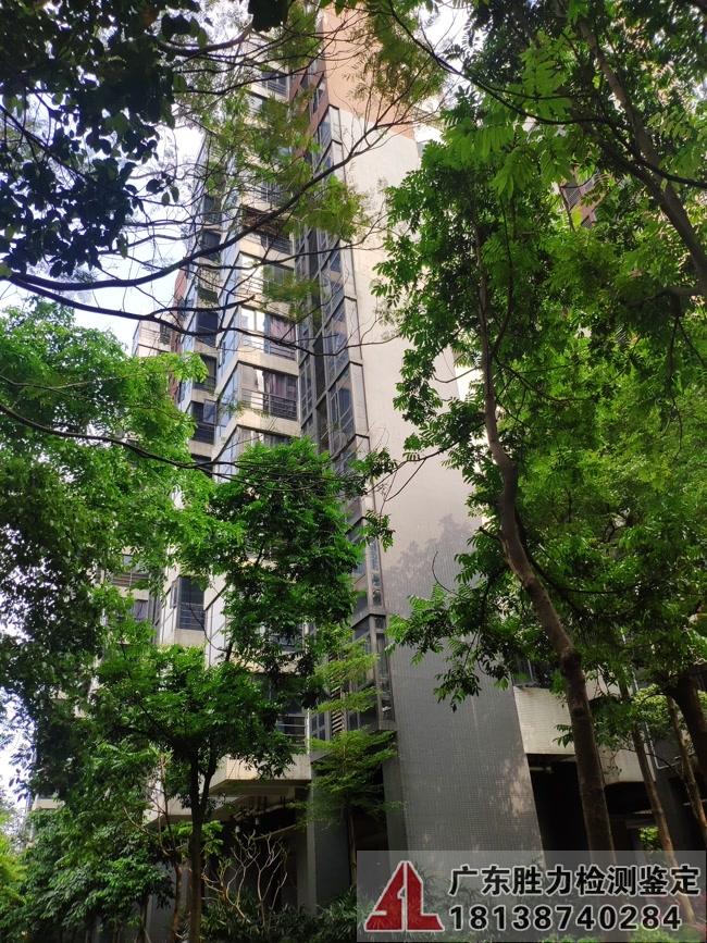 廣東省佛山市南海區里水某小區房屋,據悉建于2000年后,主要朝向為坐南向北,框架剪力墻結構,共15層(地下一層、地上14層)。該房屋主體以鋼筋混凝土柱、梁、板及剪力墻承重,180mm厚磚墻圍護、間隔,外墻飾面貼小方磚。房屋需檢查部分外墻總面積約1200㎡。