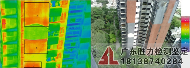 我公司對該房屋原設計圖紙資料,包括該棟房屋西外立面飾面磚材料、構造做法、施工工藝及相關技術資料等進行調查,現場對西外墻飾面磚脫落情況及外觀質量全面查勘,再采用紅外熱像儀對該樓的西立面外墻面磚進行全面空鼓檢查(紅外熱像檢測具體操作按《紅外熱像法檢查建筑外墻飾面層粘結缺陷技術規程》(CECS204:2006)的要求進行,檢查時天氣要求為有陽光照射的白天,陰天及雨天均不能檢查。外墻檢查出存在空鼓的部位,在檢查報告中注明該部位的紅外熱像圖,且在圖紙中注明軸線位置及所在樓層,以便后期處理。)。根據上述檢查結果及資料調查,分析外墻飾面磚存在的質量及安全問題、對主體結構安全的影響,等并給出解決方案及處理建議。