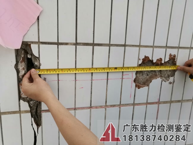 廣州市某學院教學樓房屋,據悉建于1980年,主要朝向為坐北向南,框架結構的六層建筑,總面積約4427平方米,現作學生宿舍、食堂用途使用。房屋主體結構以現澆鋼筋混凝土柱、梁、板構件承重,房屋外墻貼馬賽克磚,內墻及天花飾面為混合砂漿抹灰掃白,地面鋪耐磨磚,鐵門、鋁合金窗。 為了解該房屋現時的結構可靠性及抗震性能是否滿足規范和使用要求,以為下一步加固、改造提供相關技術資料和依據,受業主方委托,我司對該房屋結構構件進行檢測、鑒定。